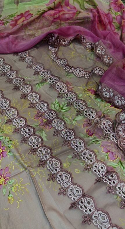 The Summer Collection 2026-Lawn Collection by Maria B, which is currently in stock at wholesale prices, exudes elegance. This gorgeous embroidered grass suit (Code: 1684) has wonderfully embroidered sleeves that go well with the large, heavy embroidered front, which gives it a rich, opulent appearance. The ready-to-wear silk printed dupatta gives a touch of elegance and charm, while the plain back and plain trousers provide a balanced and elegant finish. This gorgeous suit, which is made from export-quality lawn fabric and costs just Rs. 4550 (not including shipping fees), is the ideal addition to upscale summer collections.