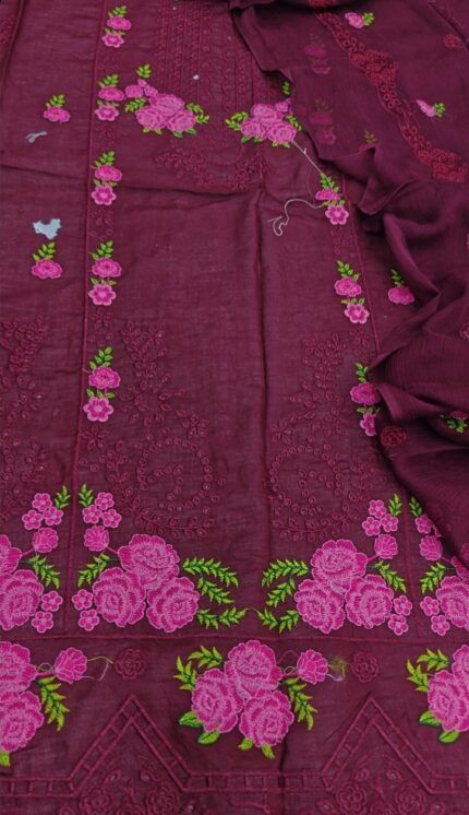 Breeze 🌿 presents a sophisticated accent to your summertime wardrobe. This lovely dark green lawn dress is made to add flair and comfort to your summer wardrobe. The ensemble is elegant and classy, with a pure bamber chiffon dupatta embellished with beautiful little flower embroidery in the center and two-side embroidered borders. For a well-balanced design, the back is left unadorned while the front is heavily embroidered with thread. It has a simple pair of trousers and sleeves with delicate embroidery. At just 3250, this gorgeous ensemble is ideal for informal get-togethers or summertime excursions. "🌸✨