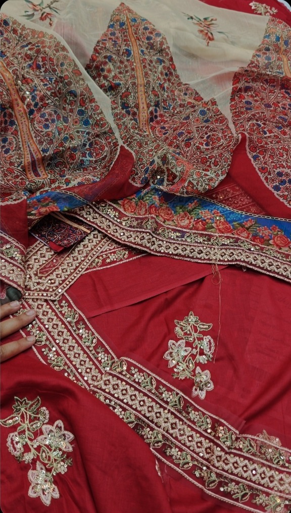 Embroidered Sequins Front Organza Border