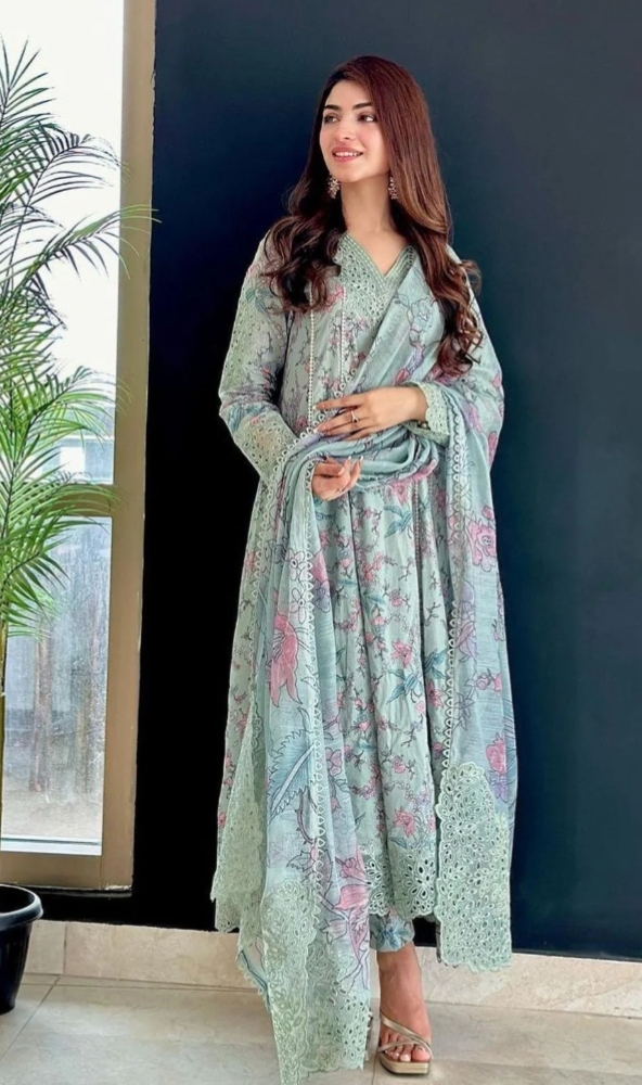Aneela's Summer Collection 2026 Lawn Edition has a chic ready-to-wear style ideal for daily elegance. This ensemble, which is made of lawn fabric of export grade, has an embroidered sleeve for a sophisticated look and a fully printed front that is accentuated with a lovely neck and daman patches. The embroidered organza dupatta gives a touch of sophistication, while the printed back and trousers create a unified, fashionable design. This design is provided at an appealing wholesale price of Rs. 3350, excluding delivery fees, and is available in stock under Code 1636.