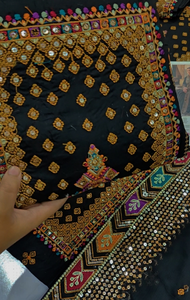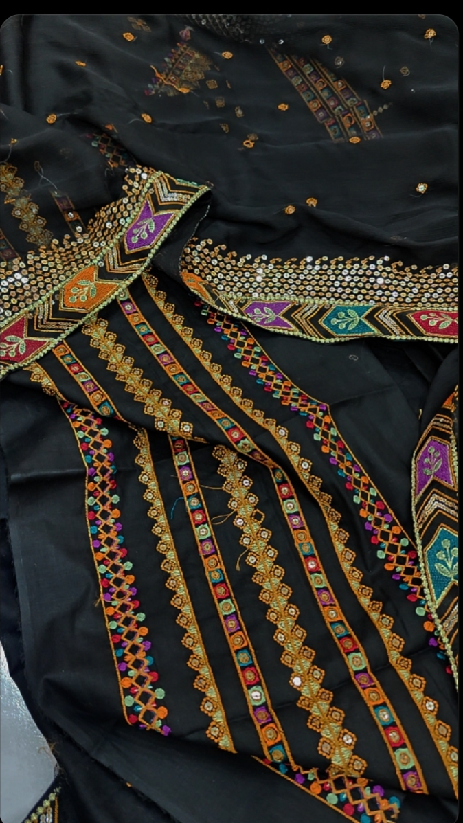 ✔️ Front heavily embroidered with sequins on organza fabric