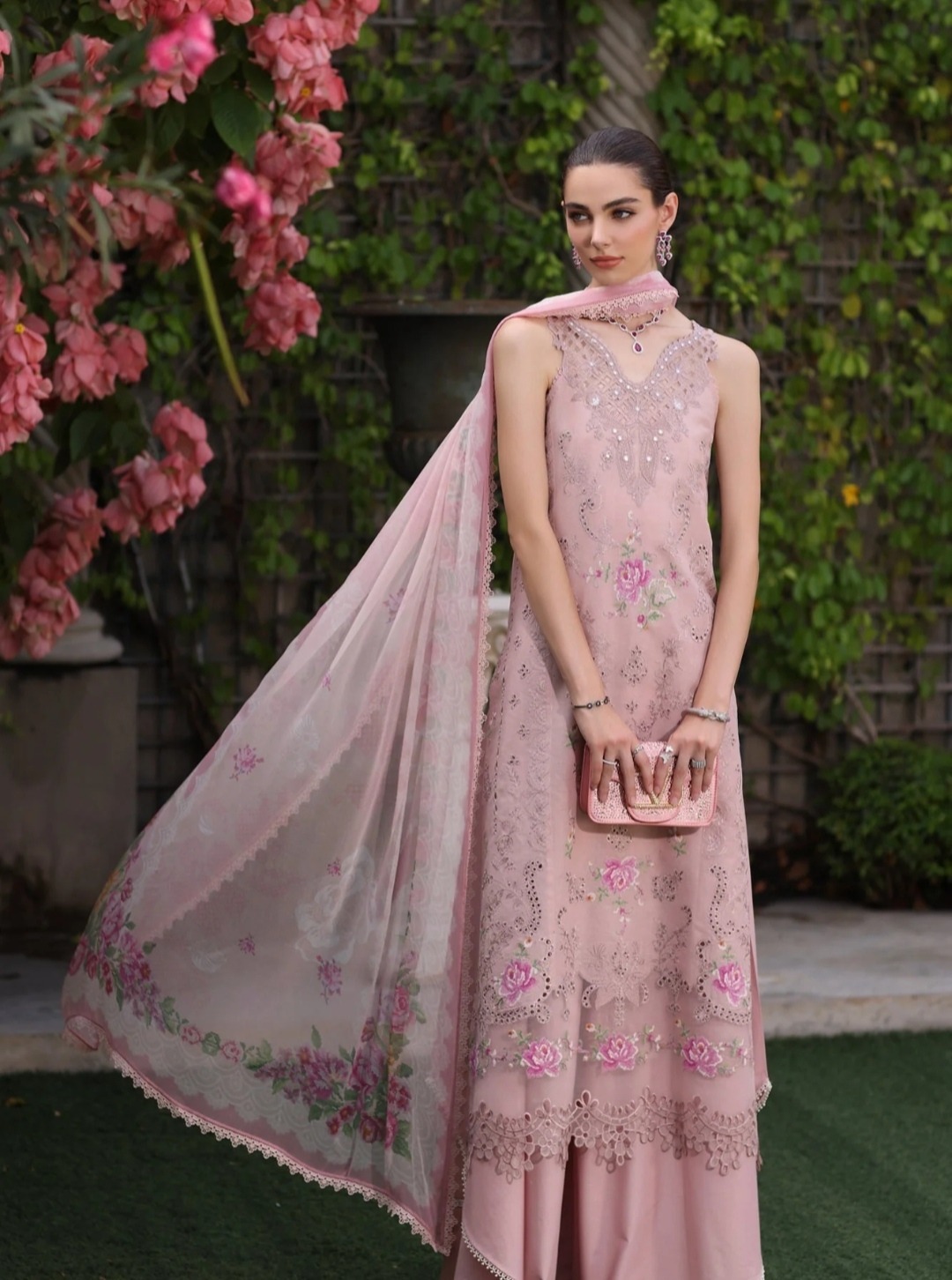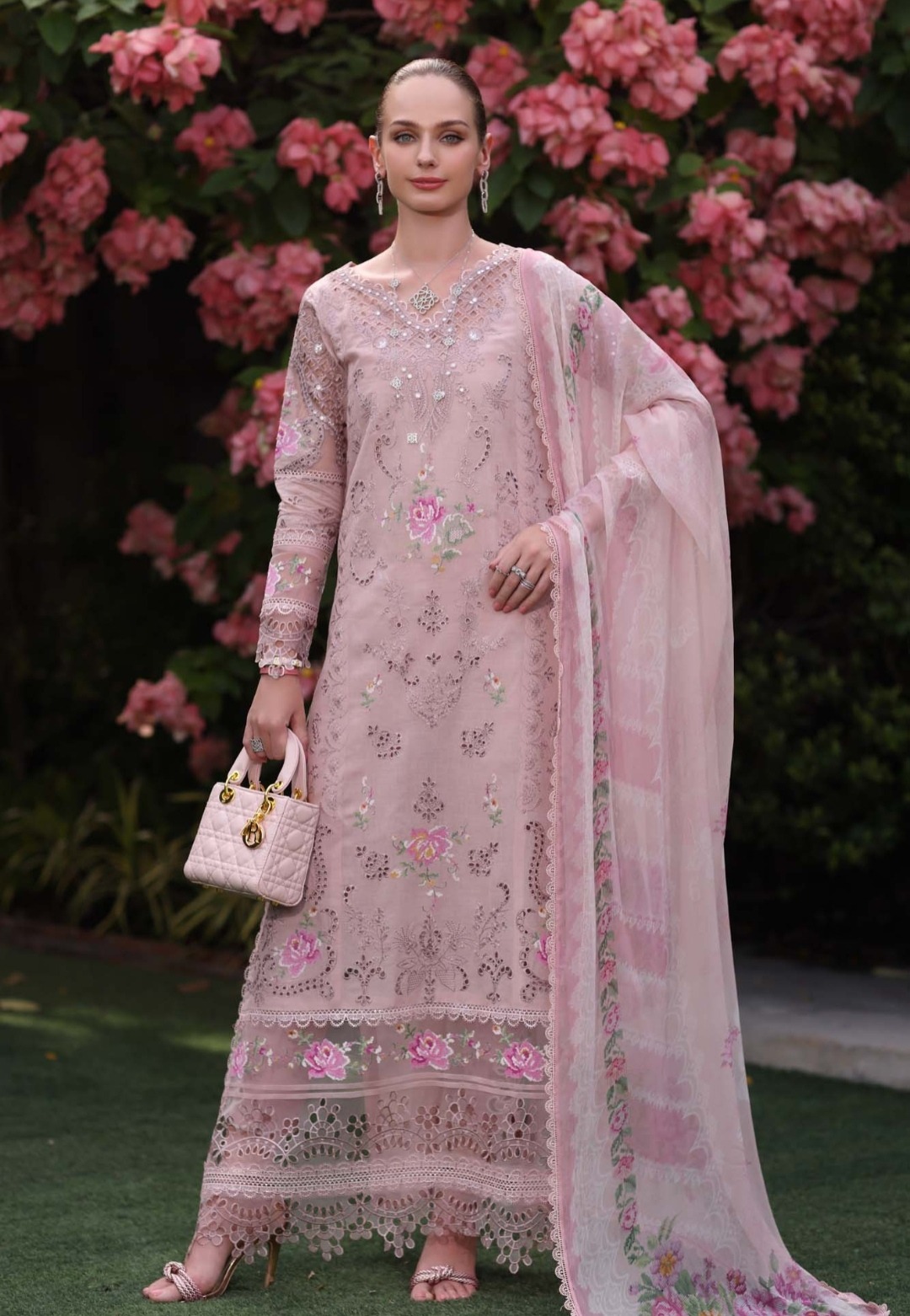 The **Summer Collection 2026**‘s Agha Noor Lawn is a high-end, export-quality ensemble that is perfect for a sophisticated and classy summertime appearance. Made from breathable lawn fabric, this dress has exquisite craftsmanship throughout, with totally heavy Chicken Kari embroidery on the front and exquisitely embroidered Chicken Kari sleeves and back. The ready-to-wear printed voil dupatta with a two-sided border gives a sophisticated finishing touch, and the basic trouser nicely complements the beautiful embroidery. This outfit, which is in stock and available for a wholesale price of **Rs. 3750** (not including shipping fees), is a great option for anyone looking for elegant and sophisticated summer clothing.